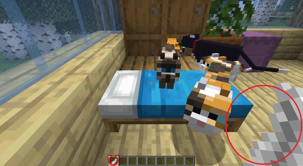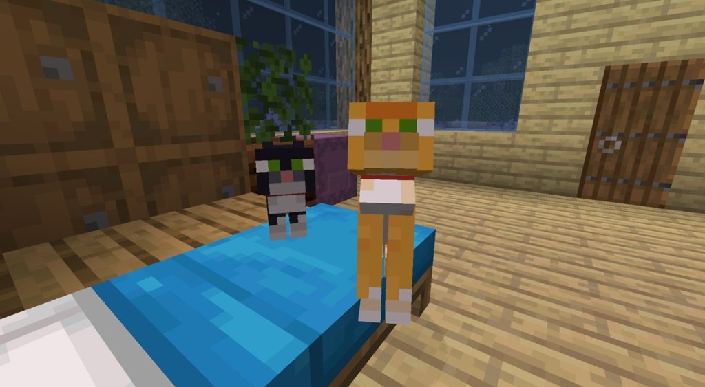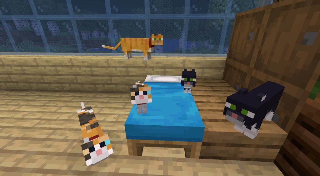 ネコはプレイヤーが飼いならすことで、さまざまな特性を持つようになります。飼いならしたネコは、プレイヤーの近くに寄ってきたり、座ったりなどの仕草を見せます。また、ネコは周囲にいるクリーパーを追い払ってくれることがあります。