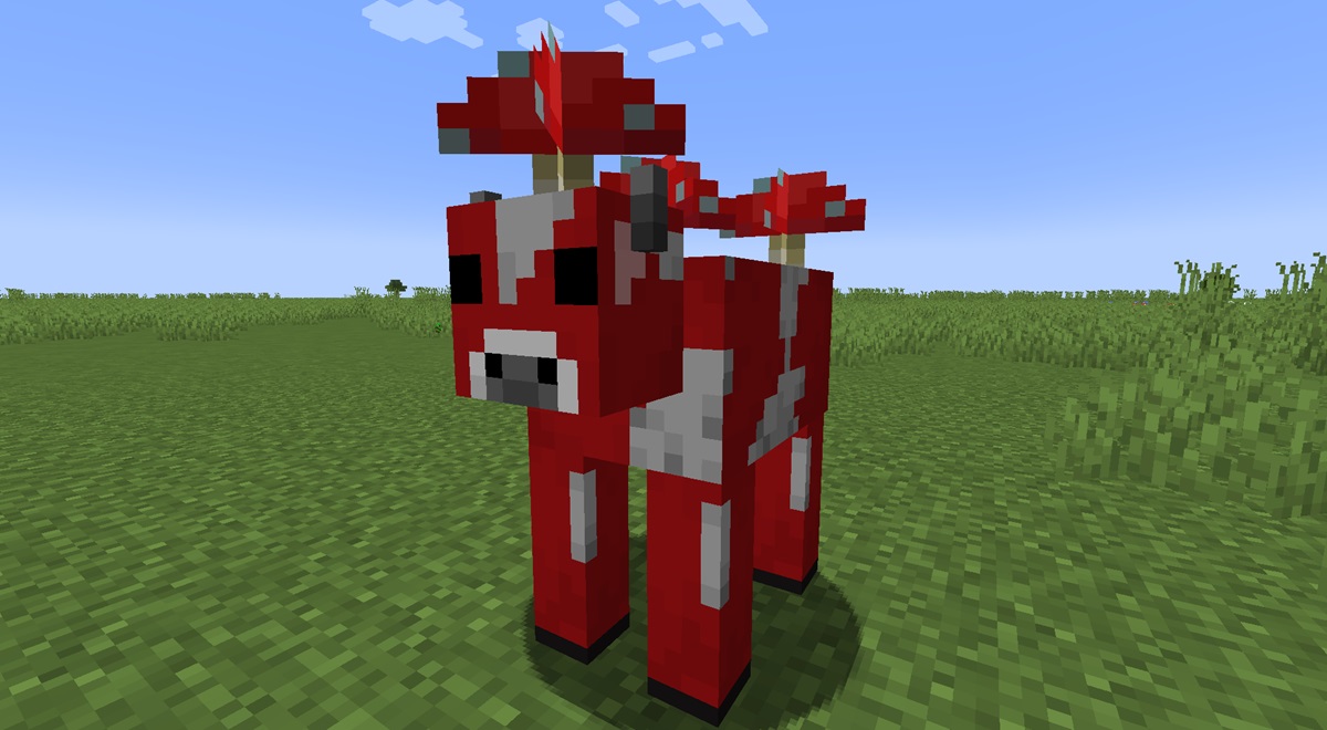 | 出現バイオーム | キノコ島バイオームで明るさが9以上のときに菌糸の上に4〜8頭の群れでスポーンする。他のバイオームには自然にスポーンしない。赤いムーシュルームが雷に撃たれると茶色のムーシュルームに変わる(逆もある)。茶色のムーシュルームは自然にスポーンしない。赤いムーシュルームは、5%の確率で仔牛としてスポーンする。 |