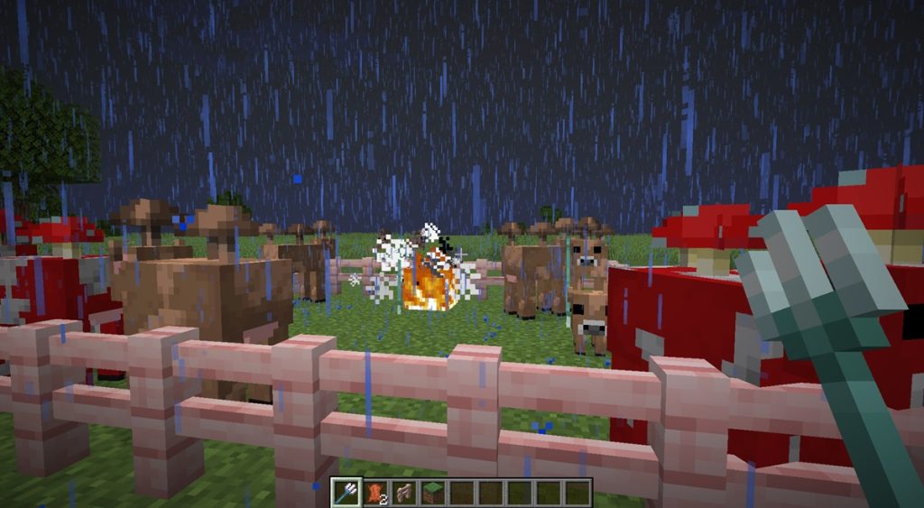 もう一つの方法はムーシュルームに雷を打たせて色を変える方法です。