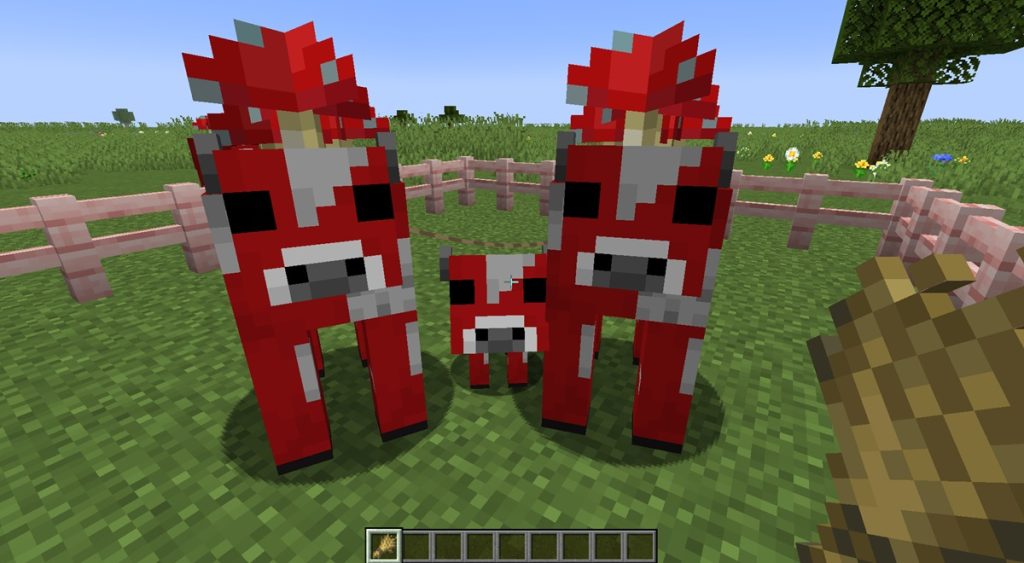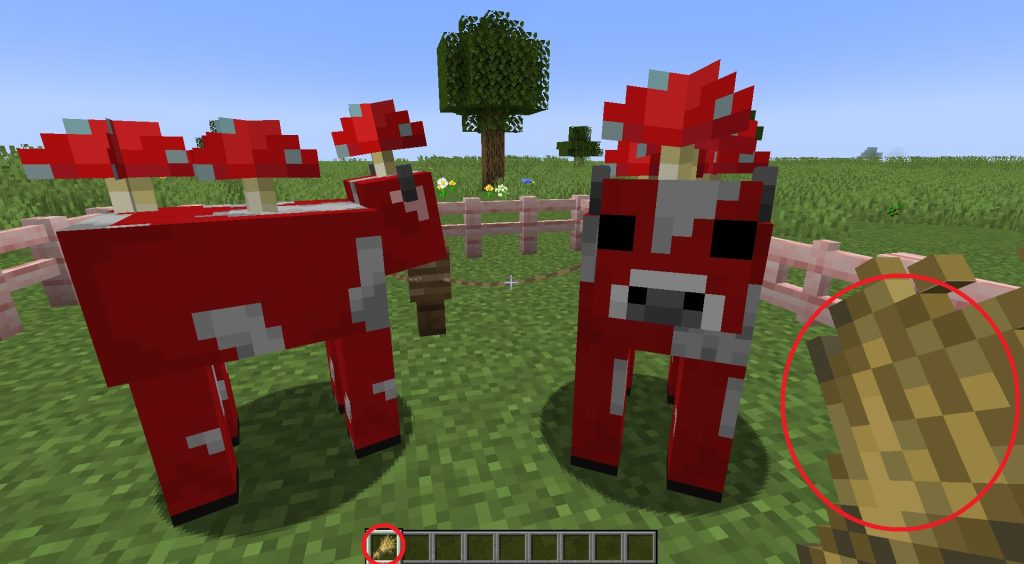繁殖するためには、まずそれぞれのムーシュルームに小麦を与えます。