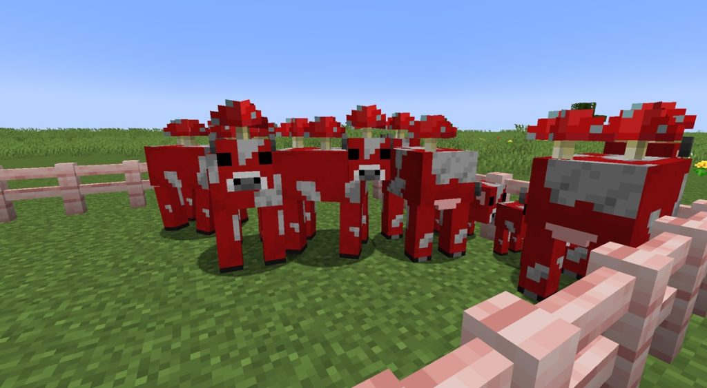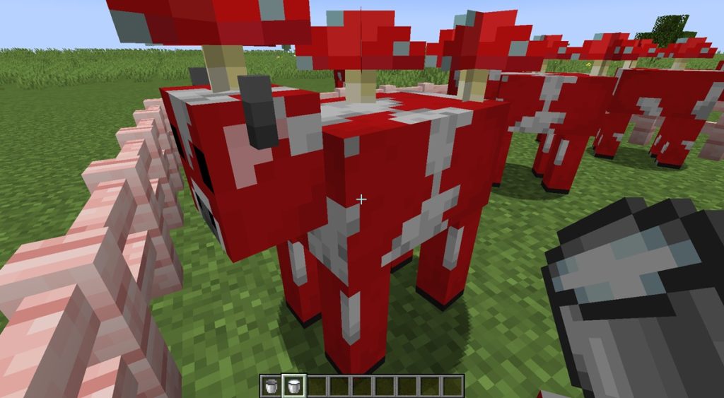 - キノコ島バイオームに生息し、ミルク入りバケツやキノコシチューの資源として使うとかなり便利なモブです。